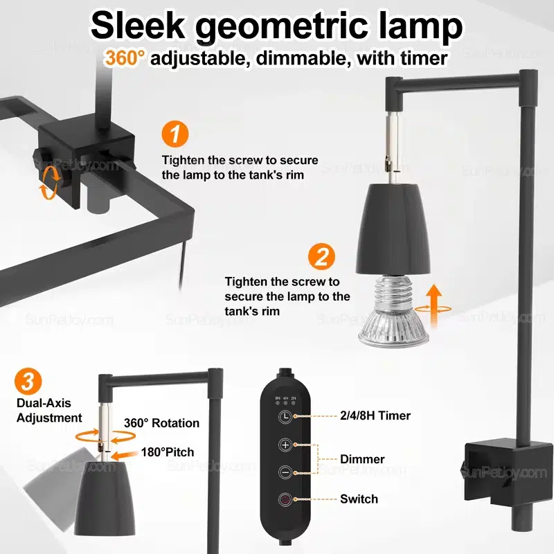 - Integrated basking platform with stable access ramp