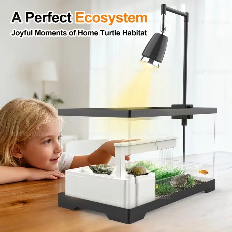 The elevated basking platform and smooth water flow support daily activity while reducing manual cleaning time.