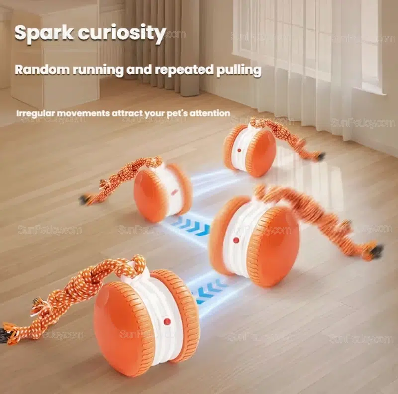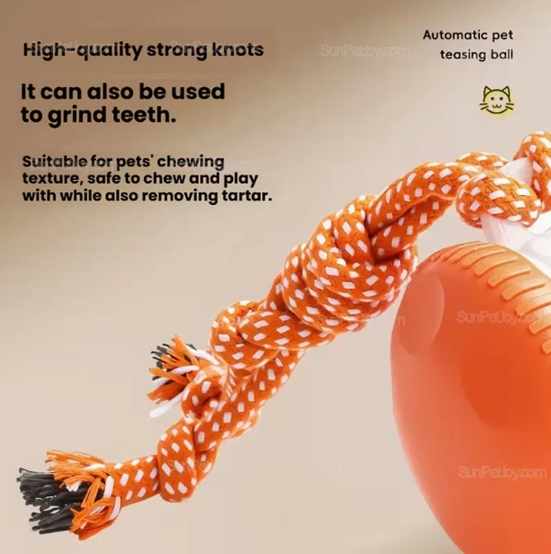 Unlike passive rolling toys, this smart cat toy ball with rope attachment combines motorized motion with tactile interaction. The textured outer shell and braided rope encourage chasing, pawing, and biting—making it suitable for daily indoor use across a wide range of cat breeds.