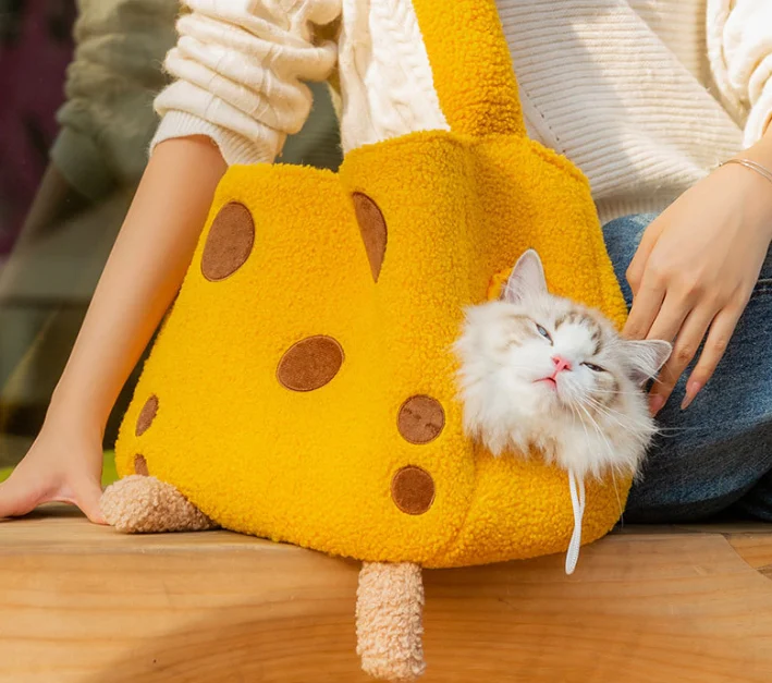 This bags for cats is a specialized pet carrier featuring a giraffe design that combines a soft lamb fleece exterior with integrated spot patterns, a simulated head on the adjustable shoulder strap, and a breathable outlet for the pet. Manufactured with wool grain, composite sponge, and polyester taffeta, it delivers structured support and is produced in two sizes suitable for small cats and dogs. The design addresses needs of wholesalers, pet stores, ecommerce sellers, and brand owners seeking differentiated inventory that supports efficient stock movement and retail performance while providing functional transport for pets and convenience for owners.