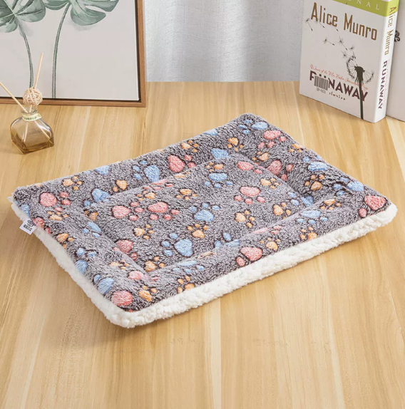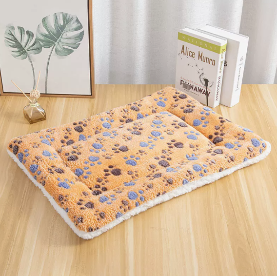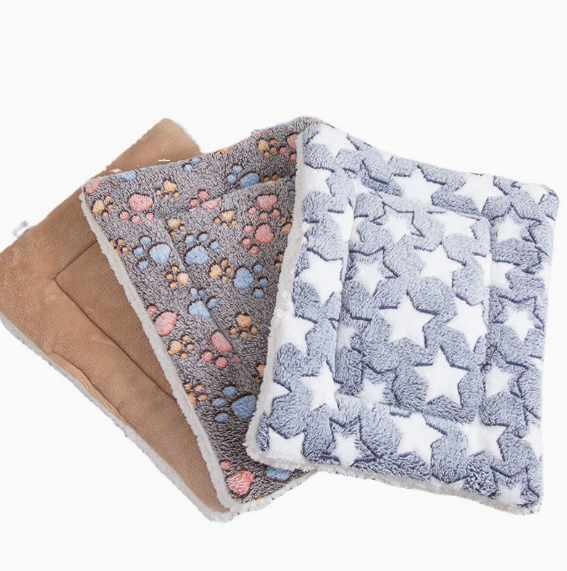 Material: Cotton velvet + flannel + cotton. Colors: milk white with paw prints, yellow paw print, deep coffee paw print, star print and additional variations with sheep fleece base.