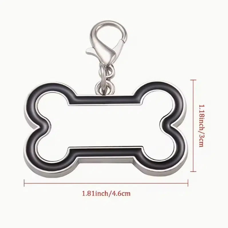 The bone silhouette is instantly recognizable on product grids, while the glossy photo window helps retailers market it as both an ID tag and a keepsake.