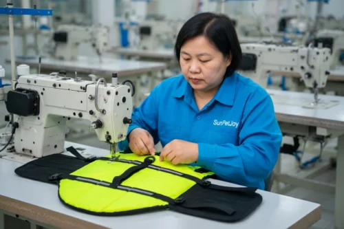 The process begins with careful fabric selection, including oxford cloth, reinforced lining, sandwich breathable mesh, pearl cotton foam sheets, and pre-molded plastic parts. Precision cutting equipment then shapes the panels to exact specifications for sizes ranging from XXS to XXL. Industrial sewing systems join these layers using reinforced stitch patterns that secure the foam core without compromising flexibility. Reflective strips and adjustment straps are attached with specialized fixtures to maintain even tension throughout. Depending on order scale, various equipment configurations and processing methods support flexible production, from small test batches to large wholesale volumes. Final assembly integrates custom velcro and plastic buckles, after which each vest undergoes multi-point inspection for seam strength, buoyancy consistency, and fit accuracy. This controlled sequence preserves product uniformity, fostering long-term business relationships by supplying items that are ready for immediate retail distribution with minimal post-delivery adjustments.