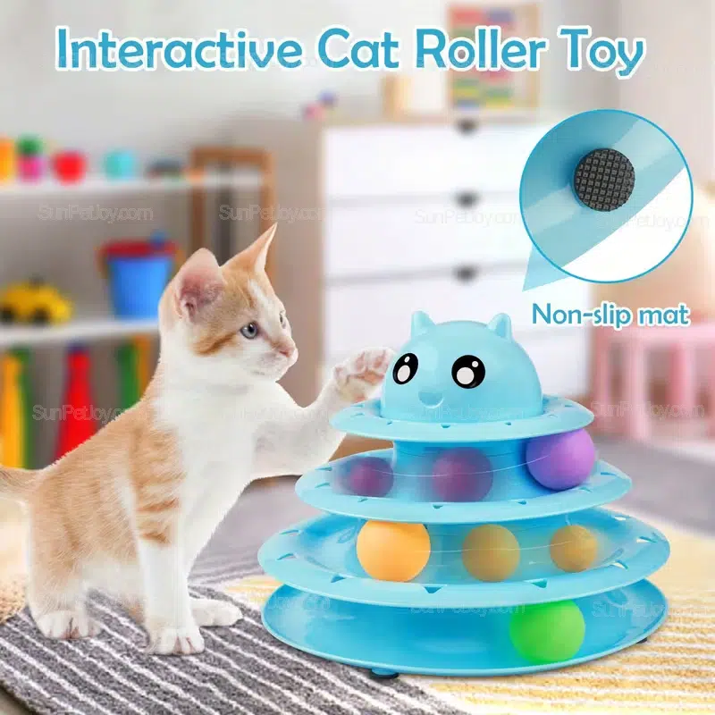 3-Level Interactive Cat Roller Toy for Enrichment & Daily Activity