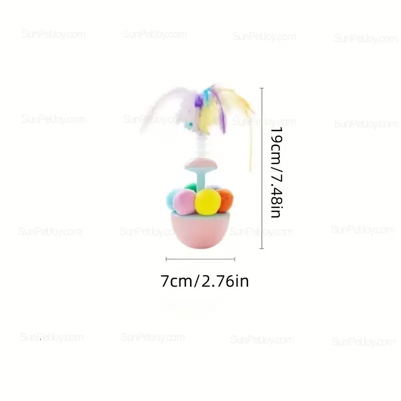 Weighted tumbler base, feather wand (replaceable), pom-pom accents |
