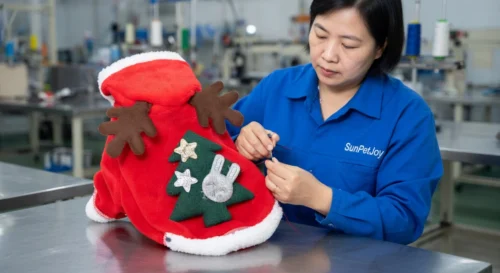 Below are real production step photos of our christmas dog costumes. Each step is executed with strict quality control to ensure consistent quality for wholesale partners.