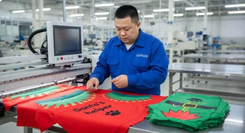 Below are real production step photos of our christmas dog shirt. Each step is executed with strict quality control to ensure consistent quality for wholesale partners.