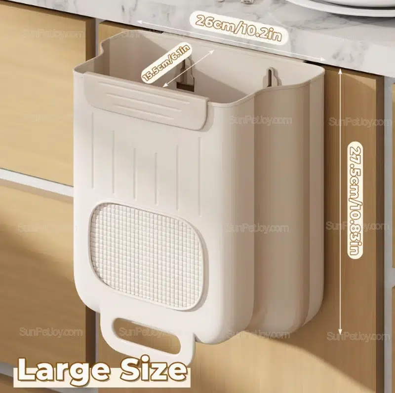 Discover our versatile collapsible hanging bin, ideal for efficient small animals waste management in pet care facilities. This wall-mounted solution maximizes space in tight areas like breeding rooms or vet clinics, folding flat when not in use.