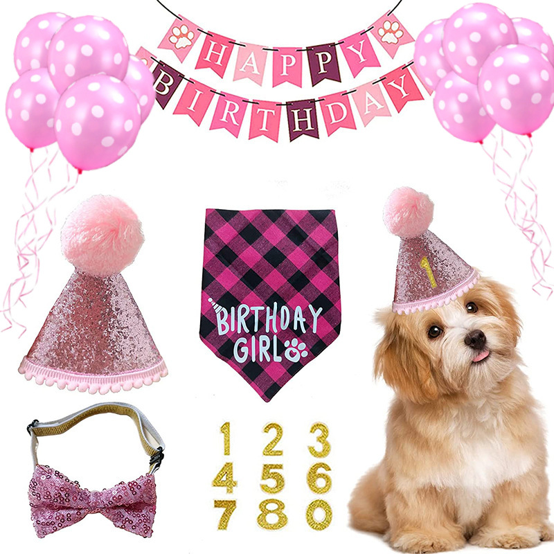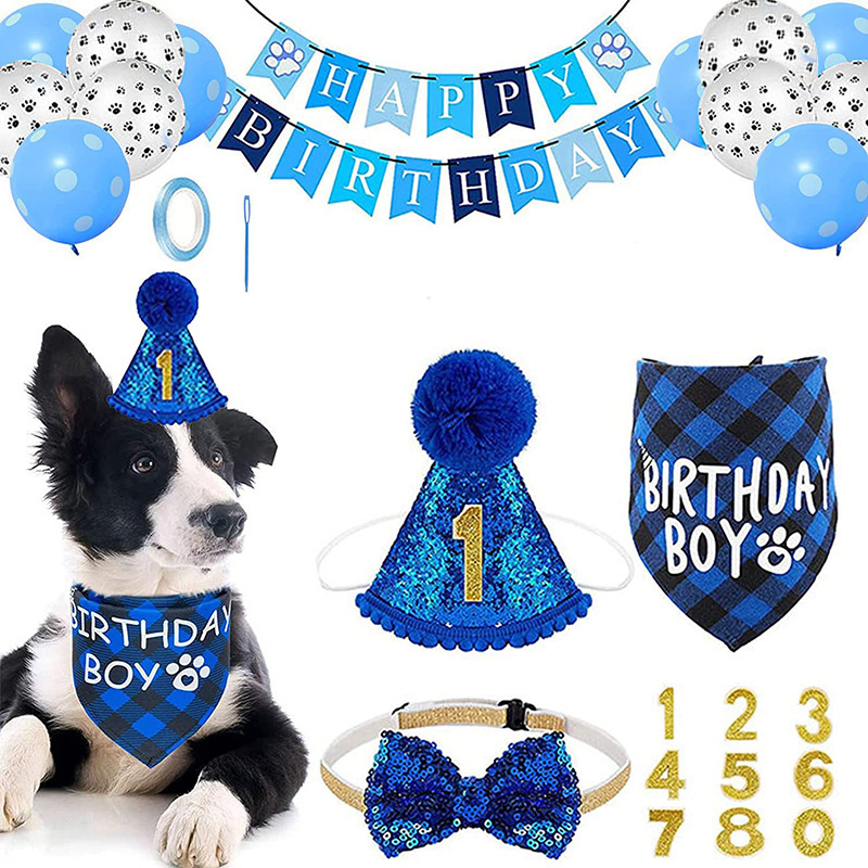 | Main Components | Birthday hat, sequin bow collar, printed triangular bandana, interchangeable number accessories (0-9) |