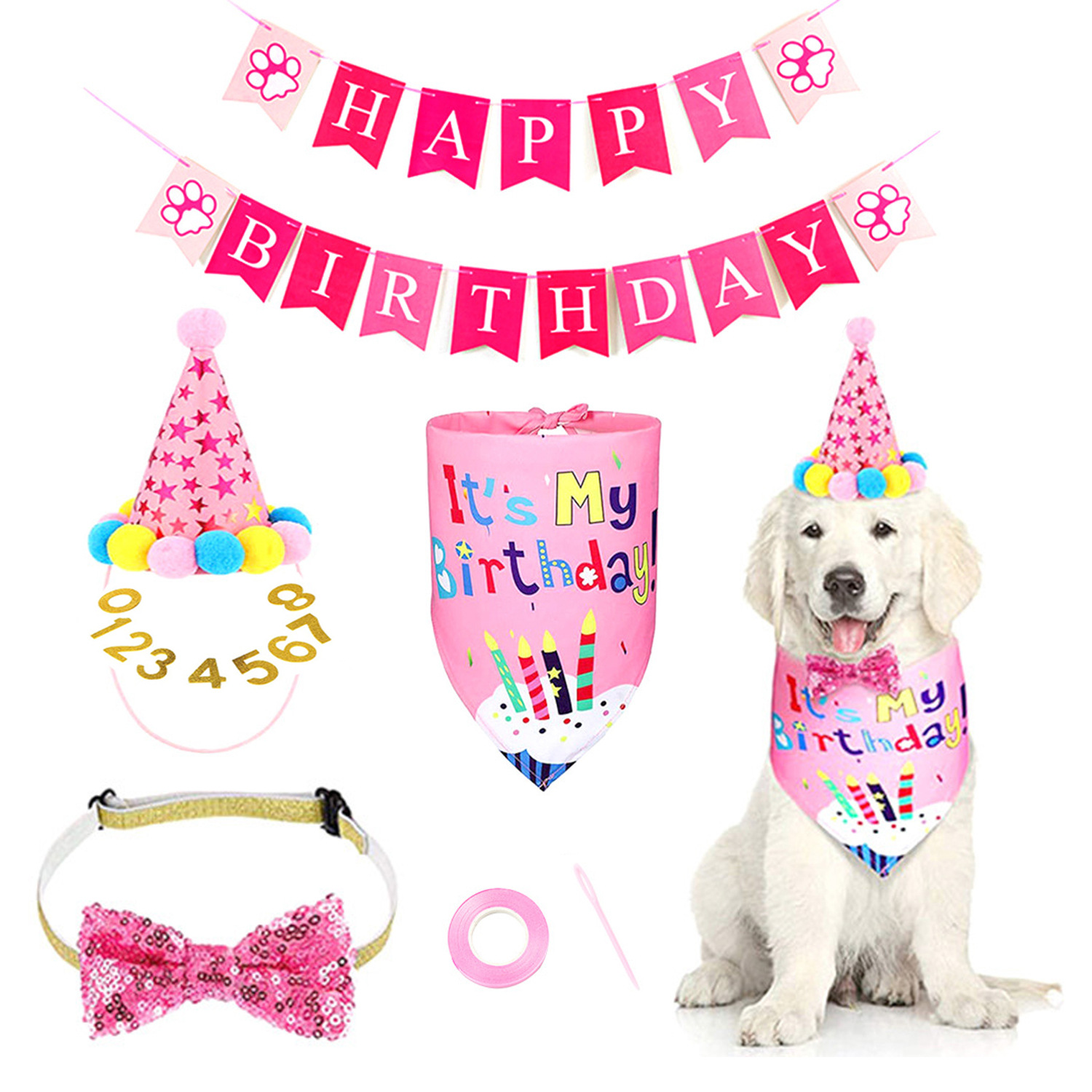 - Photo-studio and pet-event supply: The coordinated look of the bandana, bow collar, and happy birthday dog hat supports organized event styling for pet cafés, birthday parties, adoption events, and promotional photography use.