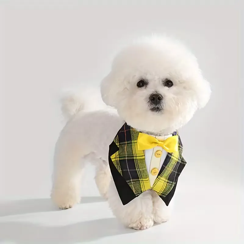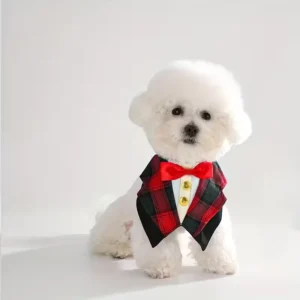 - Stylish plaid suit design with satin bow – perfect for Christmas, Halloween, and other festive promotions