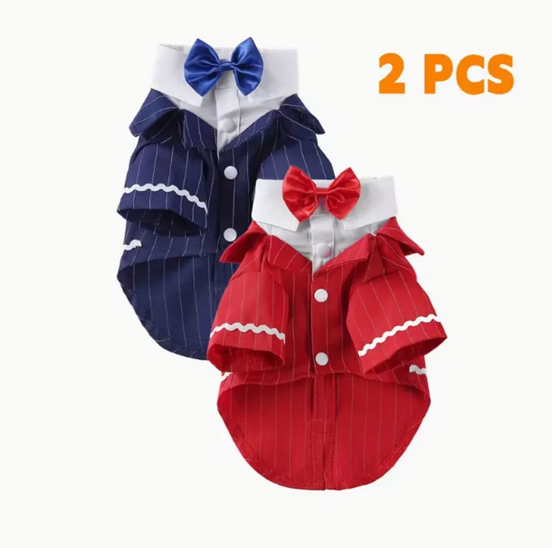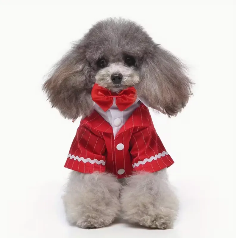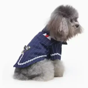 Elevate your pet apparel line with our Custom Dog Tuxedo Wholesale OEM Pet Clothing. These elegant blue and red striped polyester tuxedos feature bow ties, button details, and classic designs—perfect for weddings, parties, and holidays. As a B2B factory specialist in wholesale dog clothing and OEM pet clothing, we offer full customization: sizes, colors, logos, fabrics, and bulk production. Attract premium clients with durable, stylish custom dog tuxedo for dog wedding attire.