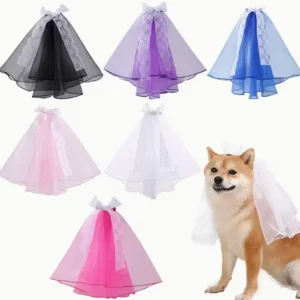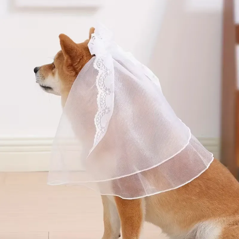 Elegant Custom Dog Wedding Veil with Lace Bow – OEM Wholesale Pet Accessory