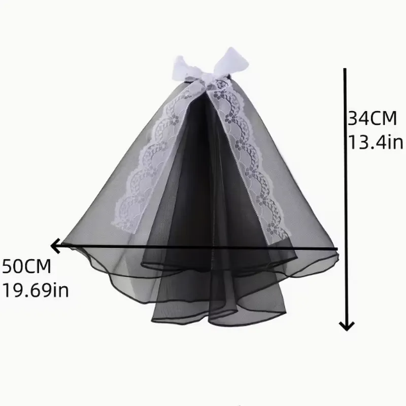 - Design: Lace-edged veil with ribbon bow