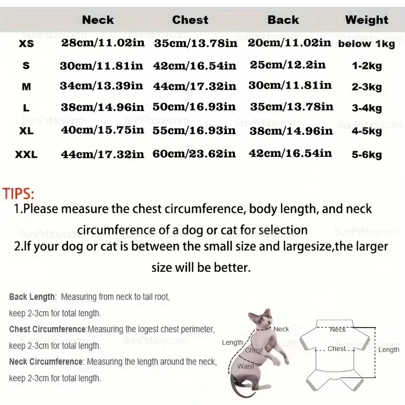 | Size | Neck | Chest | Back | Weight |