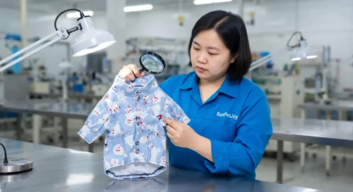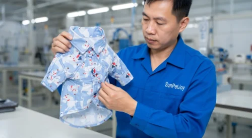 This is our thorough quality inspection verifying seams, button security and print alignment on every dog shirt, guaranteeing flawless results and dependable performance for wholesale partners.