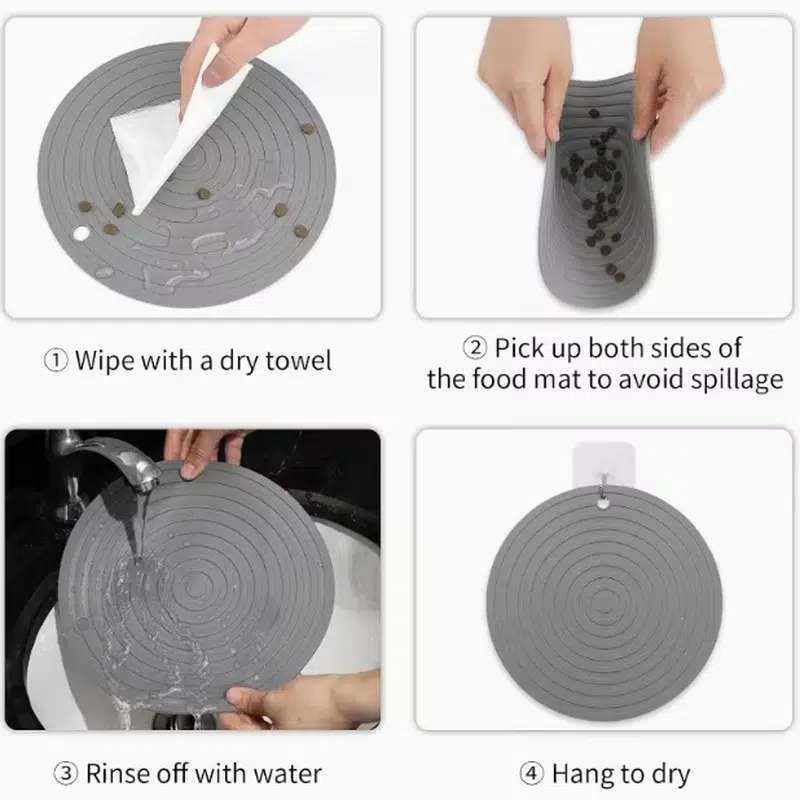 Crafted from premium silicone, our mats feature raised threads to prevent overflow, a thickened edge for firmness, and double-sided usability. They’re waterproof, non-slip, and dishwasher-safe, making cleanup effortless. Available in versatile colors like gray, navy, beige, pink, and mint, they fit small to large pets seamlessly.