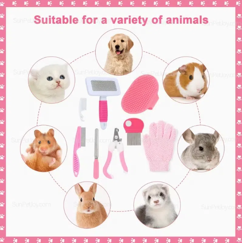 Discover our versatile custom small animals grooming tools multi-purpose pack, designed for pet care professionals and wholesalers seeking reliable solutions for rabbits, guinea pigs, and hamsters. This 8-piece set includes precision nail clippers with new clipping technology, gentle slicker brushes to remove excess hair, and ergonomic flea combs for thorough pest control.