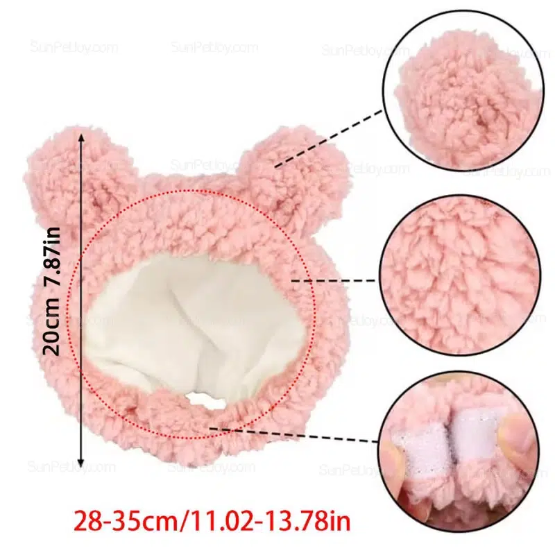 Discover SUNPETJOY’s plush bear hood, the ultimate warm pet headwear for cats and dogs. Crafted from soft polyester, this cute cat costume features adjustable tape closure for a snug fit, making it ideal for small pets in chilly weather or fun photo sessions.