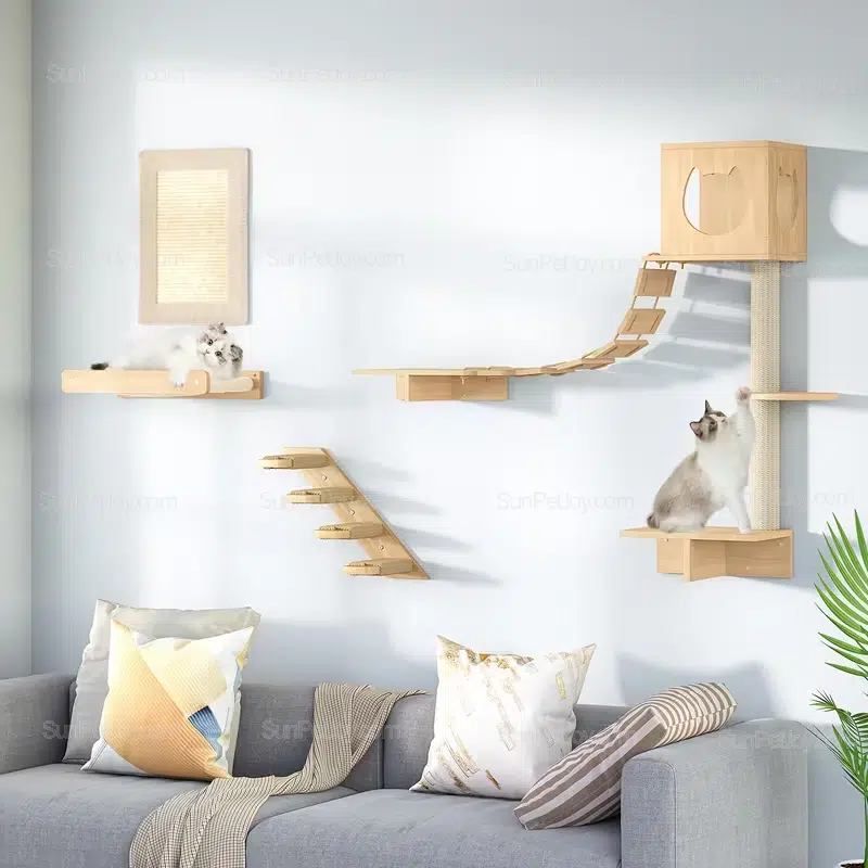 Ideal for pet retailers and wholesalers, our set supports B2B partnerships with full OEM customization options. Tailor sizes, colors, and layouts to match your brand’s needs, ensuring your inventory stands out in the competitive cat climbing shelves market.