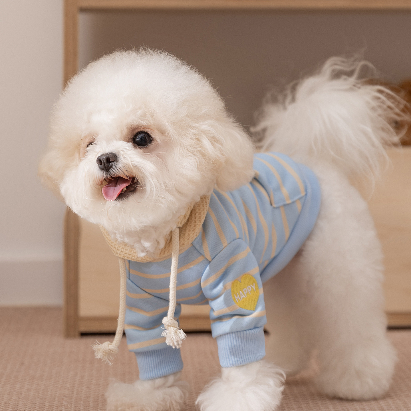 - Pet stores can display the cute dog hoodie in apparel sections where customers seek functional garments for small dogs. The visible features such as the striped pattern, hood and pocket allow shoppers to evaluate fit and utility directly, supporting in-store purchases that provide pet owners with convenient options and help stores increase sales of practical items.