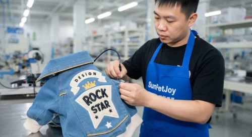 Below are real production step photos of our denim dog jacket. Each step is executed with strict quality control to ensure consistent quality for wholesale partners.