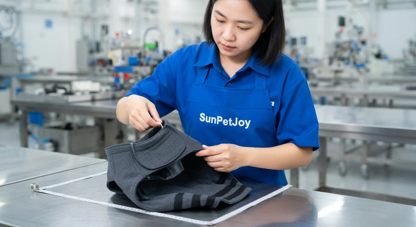 This is our detailed quality inspection where we verify seam strength, strap alignment, and precise dimensions on every finished dog anxiety jacket, guaranteeing consistency and excellence for dependable wholesale distribution.