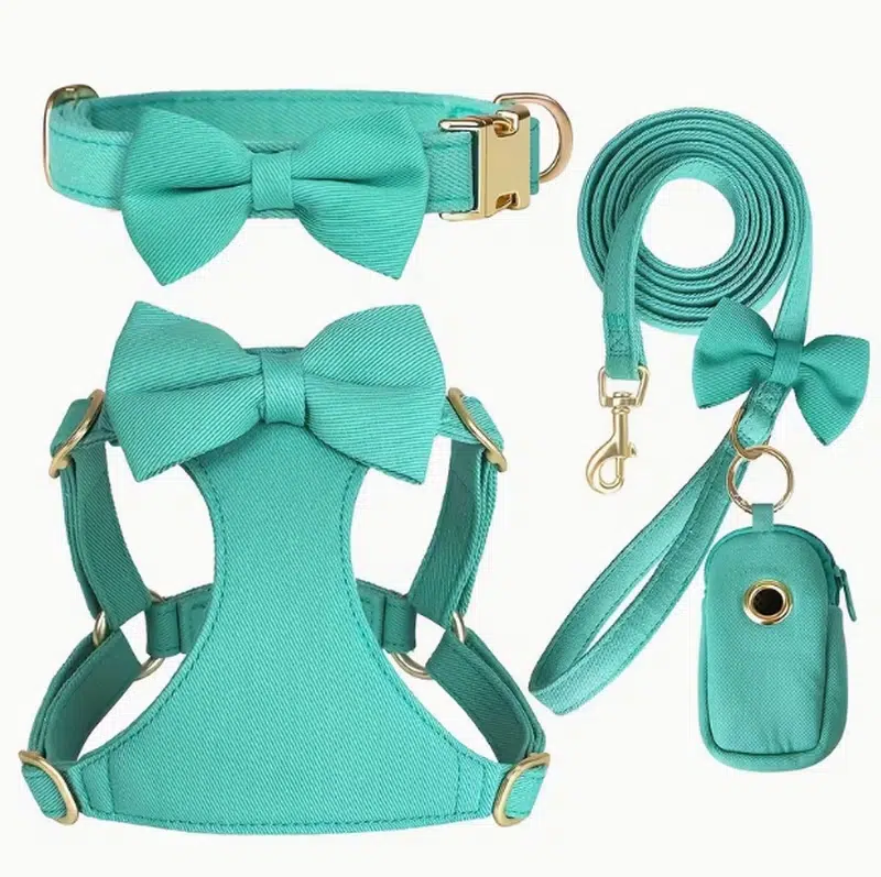 Dog Collar And Leash Set is built for brands that want a matching walk kit customers will actually choose—because it looks premium in photos and feels reliable in hand. Each set includes a coordinated collar, chest-and-back harness, 5ft leash, and a compact poop bag dispenser, finished with clean stitching and gold-tone hardware for a boutique-ready look.