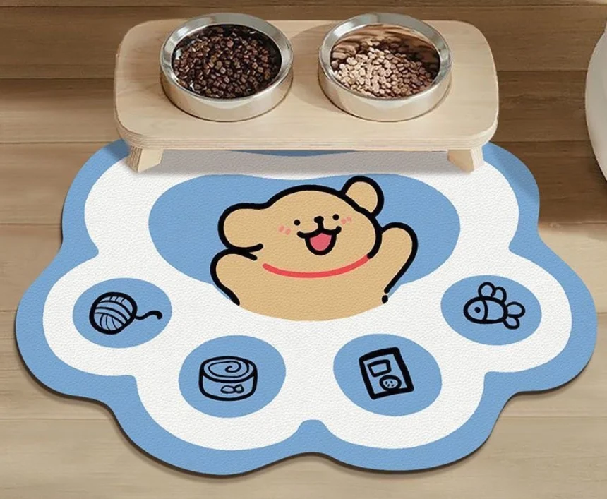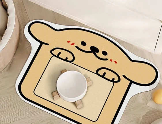 The dog eating mat is a functional feeding accessory constructed with a polyester top layer and diatom mud rubber base. It effectively contains food and water during meals while protecting floors from spills. Produced in multiple sizes and distinctive cartoon shapes, it supports wholesalers, pet stores, e-commerce sellers, and brand owners seeking reliable pet feeding products. By offering consistent quality, the design addresses common needs in retail supply chains, helping businesses improve inventory turnover, reduce returns, and provide end users with practical solutions that enhance daily feeding routines for pets and convenience for owners.
