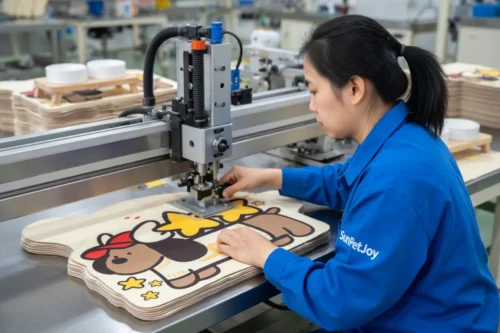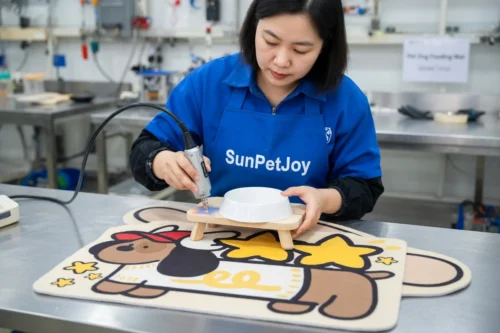 This is our precision die-cutting process where operators shape multiple layers to exact dimensions for cartoon-themed dog eating mats. This guarantees dimensional accuracy and supports dependable wholesale supply chains.