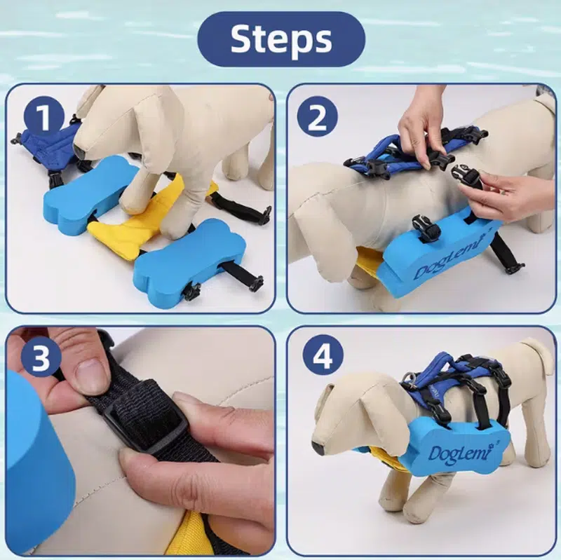 - High buoyancy EVA blocks: thick, non-toxic foam panels help keep dogs supported in water and dry quickly after use—trusted for dog life vest assortments.