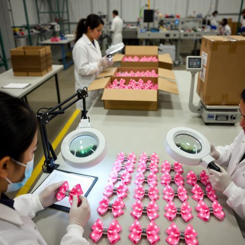 - Assembly attaches the bow to metal or plastic clips using adhesive like hot glue or stitching, ensuring a secure bond that withstands handling and enhances product reliability to lower return rates.