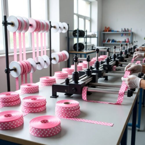 - Bow forming shapes the polka dot patterned ribbon into loops, often with manual or semi-automated tying methods compatible with tools like bow-making templates, allowing flexibility for custom textures or volumes.