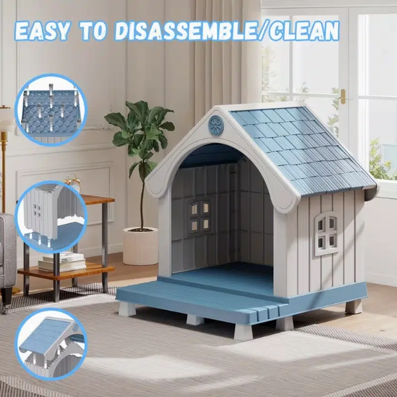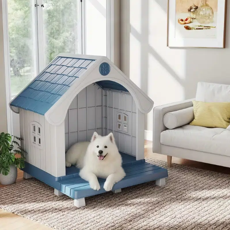 This dog house bed serves as a plastic pet shelter designed in a house-shaped structure. It incorporates a semi-open layout that offers ample resting space and blends seamlessly as home decor. Targeted at B2B buyers including pet stores, e-commerce sellers, and wholesalers, this product facilitates reliable inventory management for retail and distribution purposes. Through its durable construction, it promotes cost efficiency by reducing return rates and improving inventory turnover for procurement enterprises. Retailers benefit from its ability to attract consumers via functional pet comfort, which in turn encourages repeat purchases. For pets, the secure environment supports effective rest, while owners experience convenience in maintaining a dedicated space that ensures pet safety and well-being.