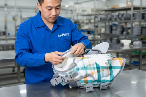 Below are real production step photos of our dog lifeguard jacket. Each step is executed with strict quality control to ensure consistent quality for wholesale partners.