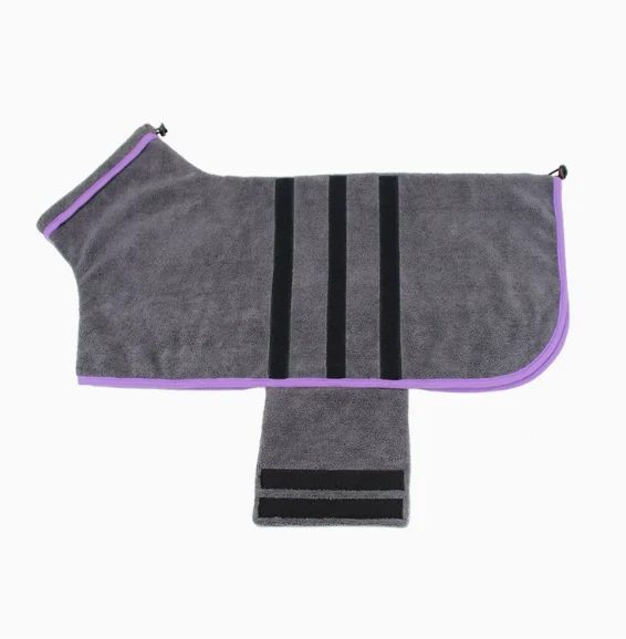 - Comfort characteristics of the dog microfibre towel arise from the fine fiber pile that contacts the skin and fur without causing abrasion during the drying process. The robe design distributes weight evenly across the back and sides, allowing natural movement while the adjustable neck and belly closures secure the fit across the size range from XS to 3XL. This functional comfort helps retailers demonstrate practical value to end customers, driving conversion in store or online displays, and assists wholesalers in building long-term relationships with buyers who seek items that improve the pet drying experience without adding stress for the animal or the owner.