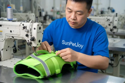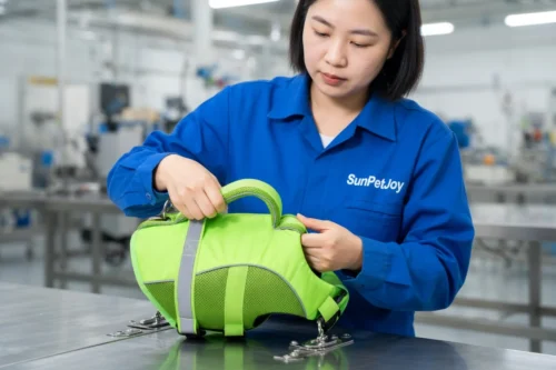 The production of the dog neoprene life vest follows a controlled sequence beginning with selection of polyester mesh fabric and buoyant core materials that meet durability and flotation requirements. Precision cutting employs computer-controlled cutting systems alongside manual pattern methods to accommodate multiple size variants accurately while optimizing material usage. This dual approach provides production flexibility for both small test runs and large wholesale volumes.