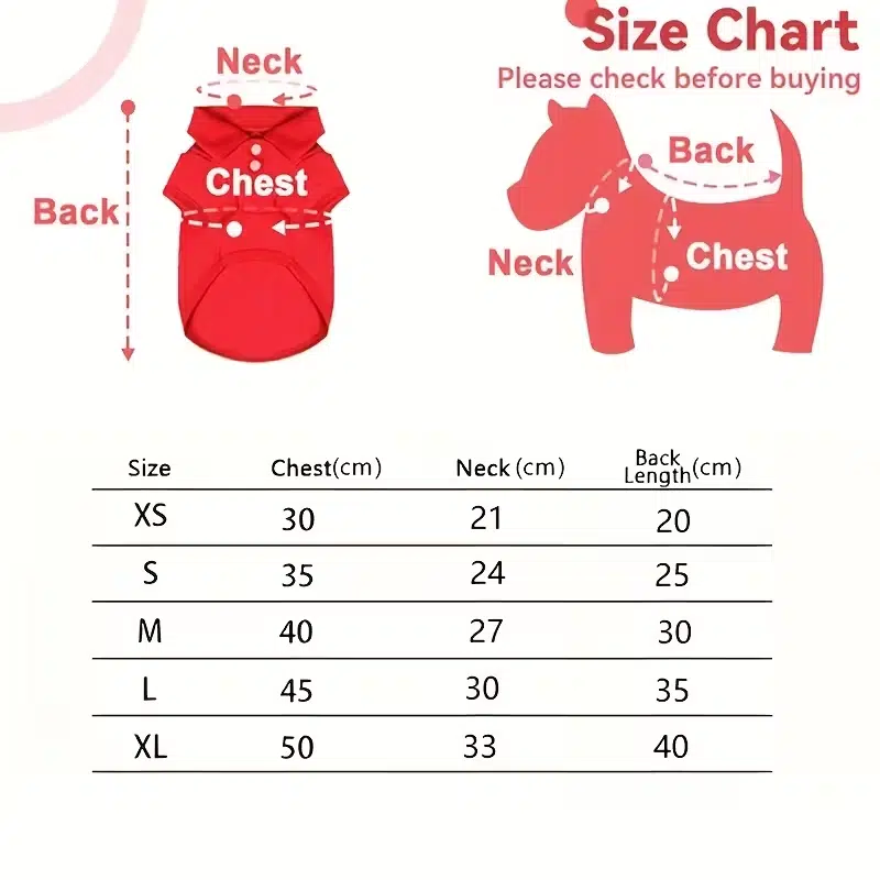 | Size | Chest (cm) | Neck (cm) | Back Length (cm) |