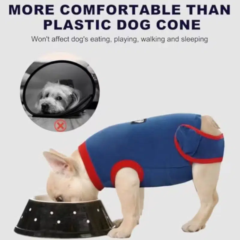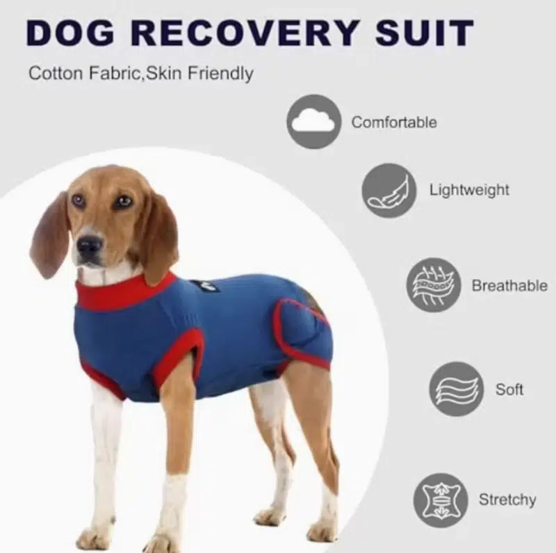 The SUN PET dog recovery suit is designed as a comfortable, cone-free solution for dogs recovering from