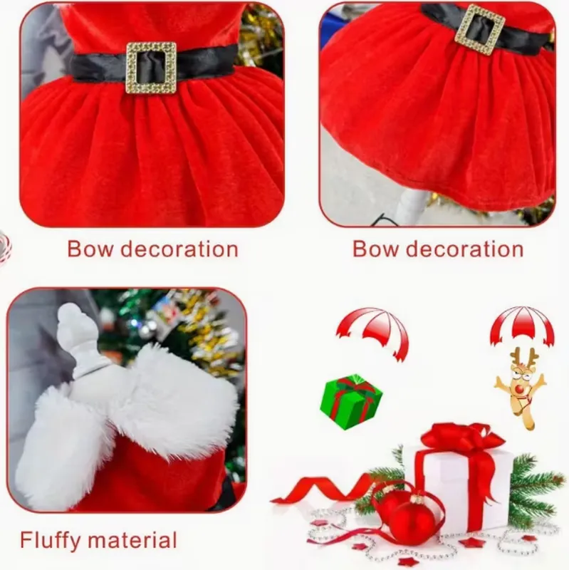 - Design: Festive ruffled hem, adjustable belt, classic Santa look