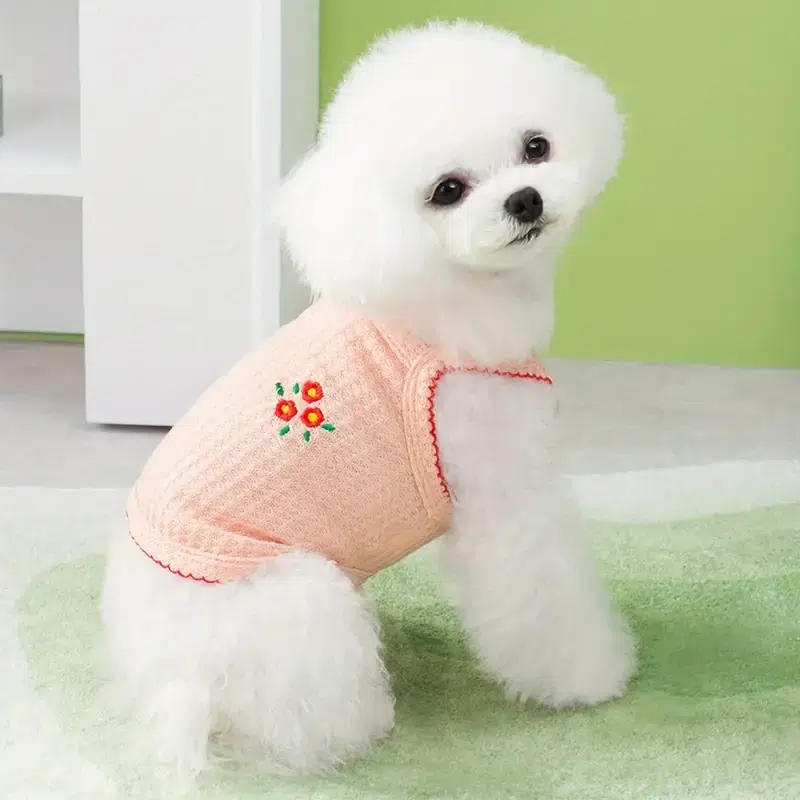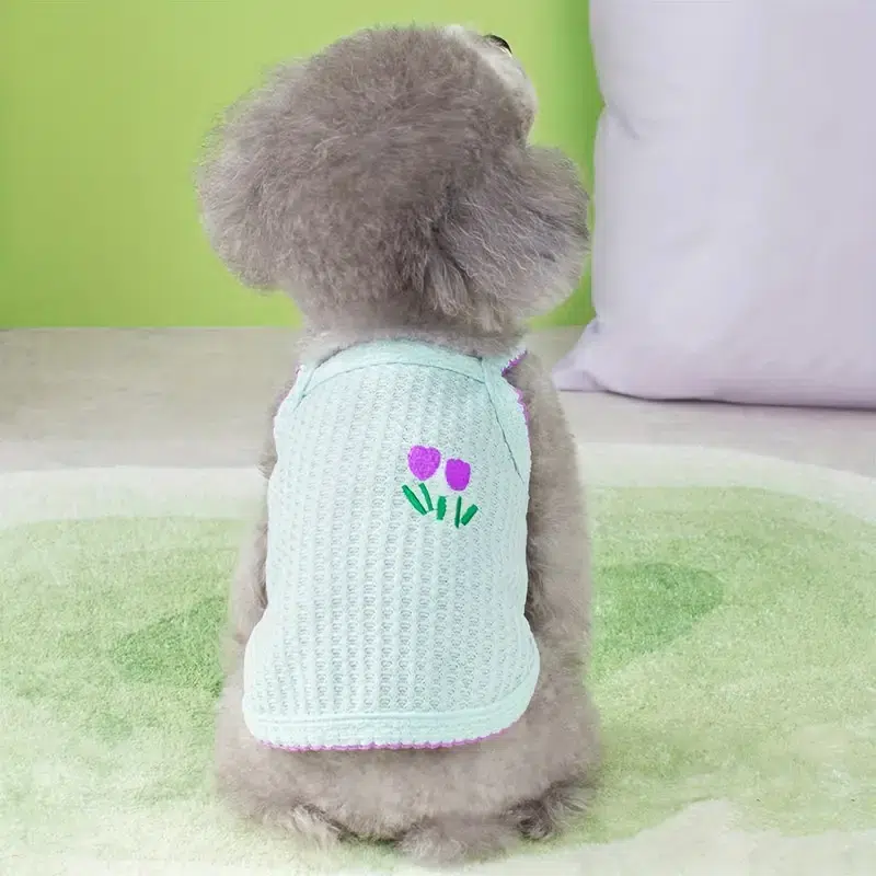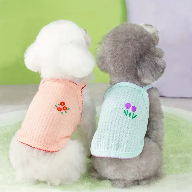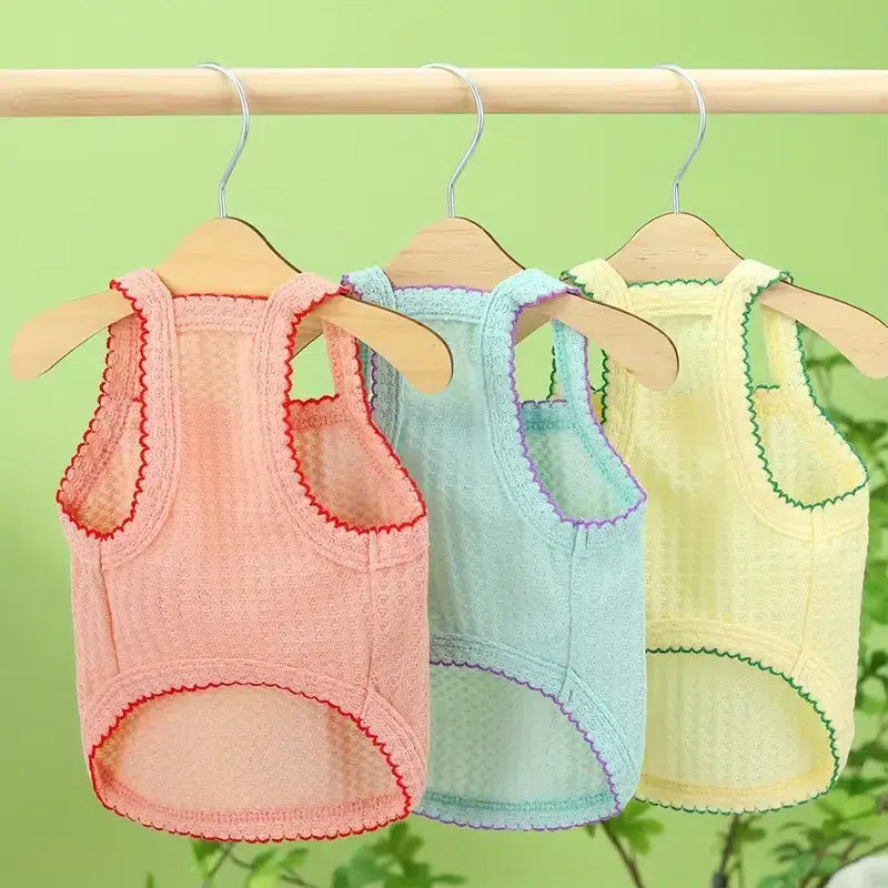 This dog summer clothes item is a sleeveless round-neck vest crafted from lightweight cotton knit fabric, featuring fitted剪裁 and contrast trim for small to medium dogs. It suits wholesalers, pet stores, e-commerce sellers, and brand owners seeking breathable apparel for seasonal inventory. The design supports quick stock turnover and retail differentiation through comfortable options that prioritize daily pet mobility for pet owners.