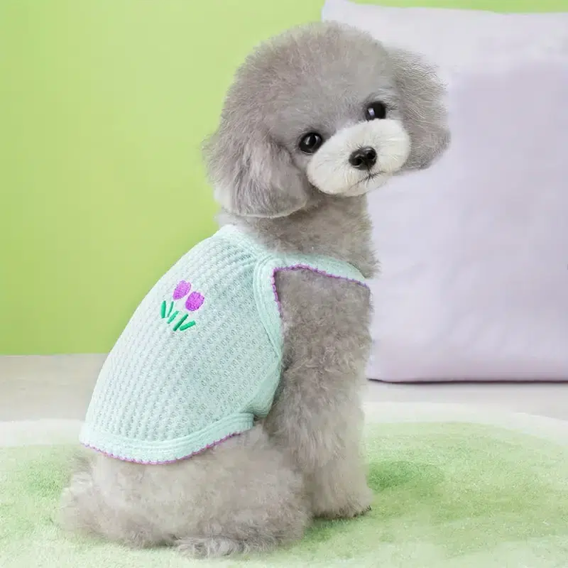 This sleeveless cotton knit vest excels in various retail and promotional settings, leveraging its breathable design and visual appeal to drive sales for small dog apparel.