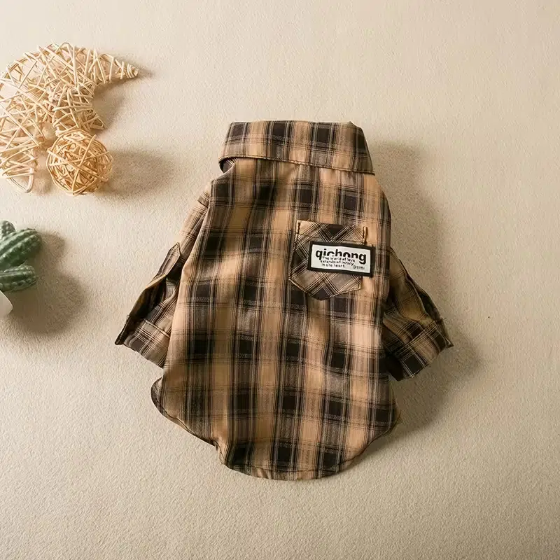 If you’re sourcing dog tee shirts that look “styled” in photos but still wear easily for daily outings, this plaid shirt delivers a clean, classic