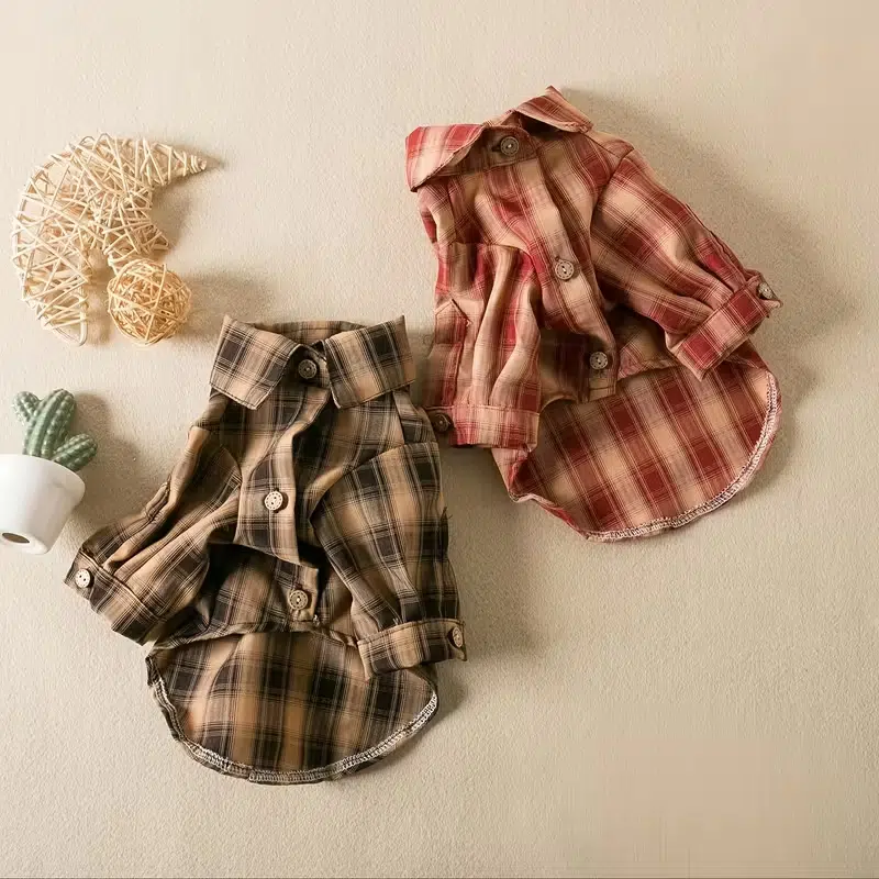 - Photo-ready plaid: the pattern reads clearly in thumbnails and lifestyle shots, helping improve click-through on listings for plaid dog tee shirts and dog button-up shirts.