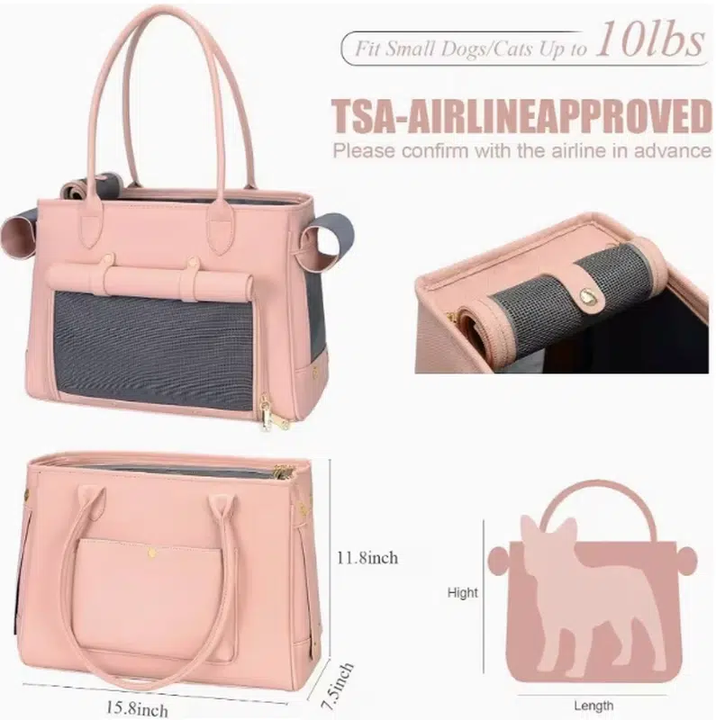 - Retail display value comes from the pink color and structured form of the dog tote bag which presents cleanly on shelves or in product photography. The combination of synthetic leather texture with mesh panels creates visual contrast that draws attention in pet store environments. This supports sellers by enhancing product visibility and helping differentiate inventory from standard options. The professional appearance aids brand owners in building product lines that convey quality. Wholesalers benefit from faster movement of visually appealing stock that appeals to both individual shoppers and corporate gift buyers.