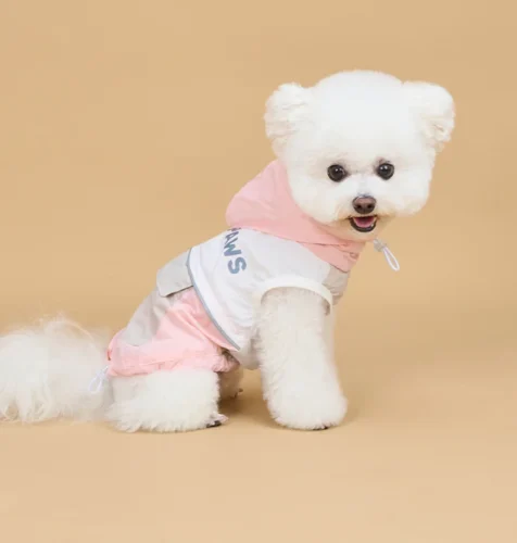 The dog uv protection shirt is a functional garment constructed from lightweight purple crinkled nylon fabric. It features waterproof and wear-resistant properties along with a main zipper closure, front storage pocket, drawstring opening, and visible brand marking. This design addresses needs of wholesalers, pet retailers, e-commerce sellers, and brand operators seeking reliable stock for small pet outdoor applications. The structured sizing supports consistent fit across weight ranges, contributing to business efficiencies such as streamlined inventory management and reduced need for frequent restocking while providing pet owners with a practical option for outings.