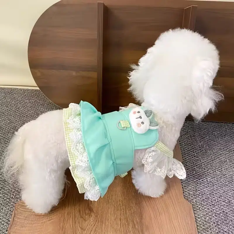 This is our dreamy tutu-style dog dress, made with a soft fitted body, layered mesh skirt, and cute star patch decoration on the back for a playful and eye-catching look; it’s ideal for small dogs and fashion-focused pet collections, and we can customize the colors, appliqués, skirt layers, and different character-themed styles for your market.