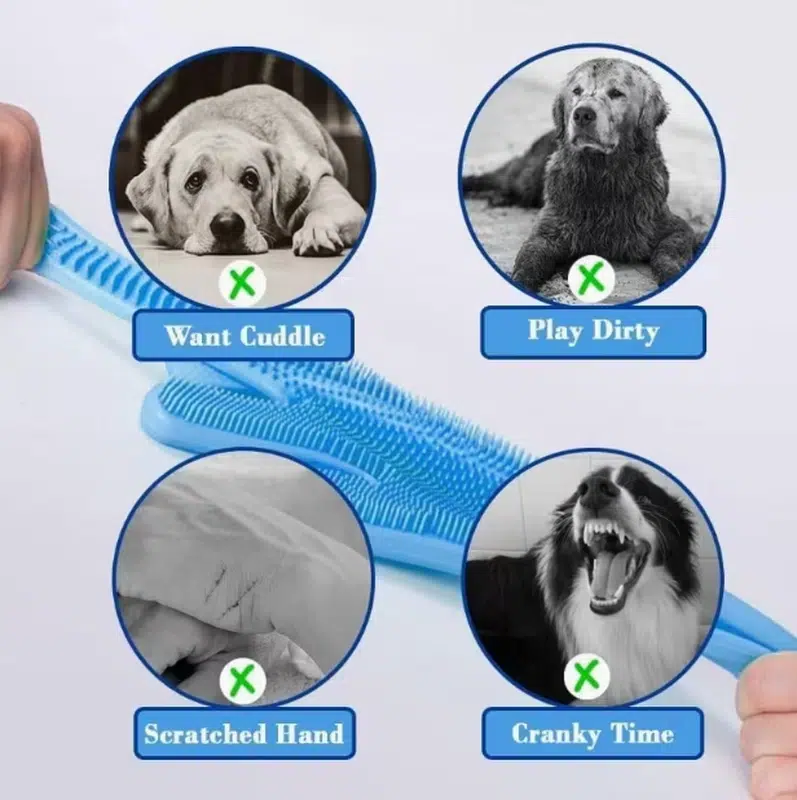 - Dense soft silicone bristles on palm and fingers allow simultaneous lathering, massaging, and deshedding, helping pet owners achieve cleaner coats with less shampoo and time while boosting impulse sales in pet stores.