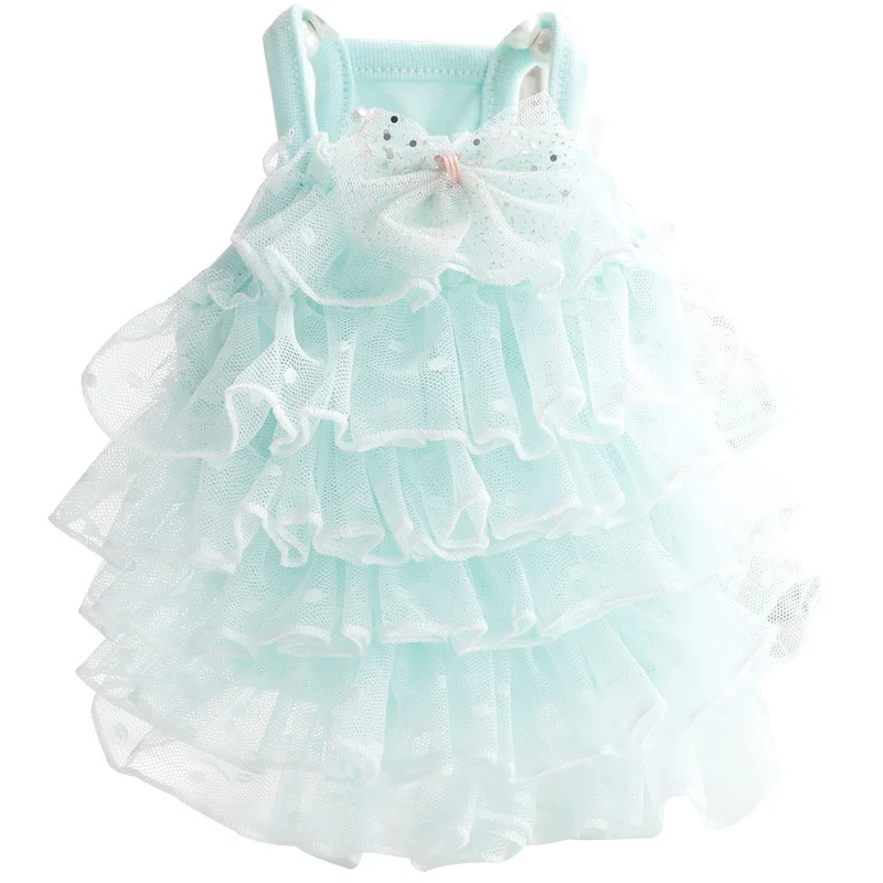 This dog wedding dress lace consists of multiple layers of mesh tulle with ruffled edges assembled over a cotton base and finished with a decorative bow. It is designed for small dogs according to the specified size range and is targeted at wholesalers, pet retailers, e-commerce sellers, and brands that supply formal pet apparel for events. The construction supports business needs by providing consistent sizing that facilitates efficient inventory management and brand differentiation within wedding themed pet product lines while delivering a breathable fit that aligns with typical requirements for pet movement during wear.