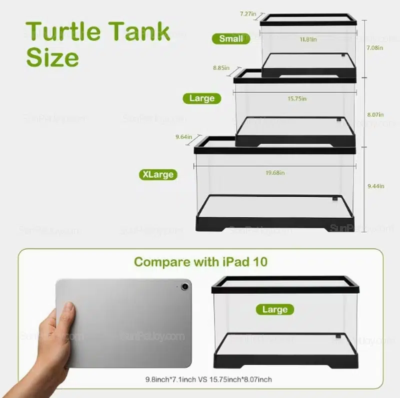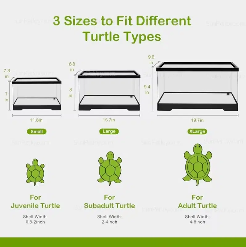 | Size | Dimensions (L x W x H) | Suitable Shell Width | Turtle Stage |